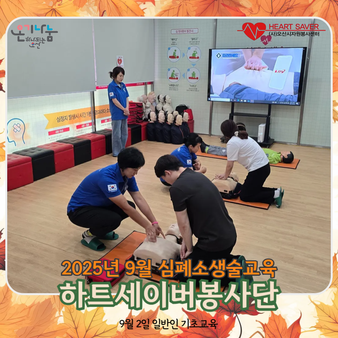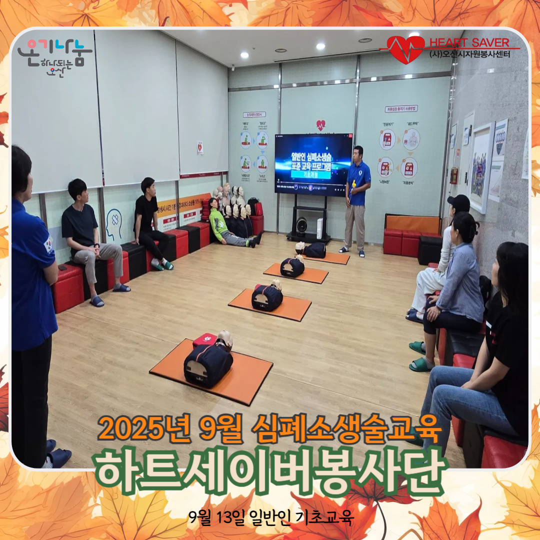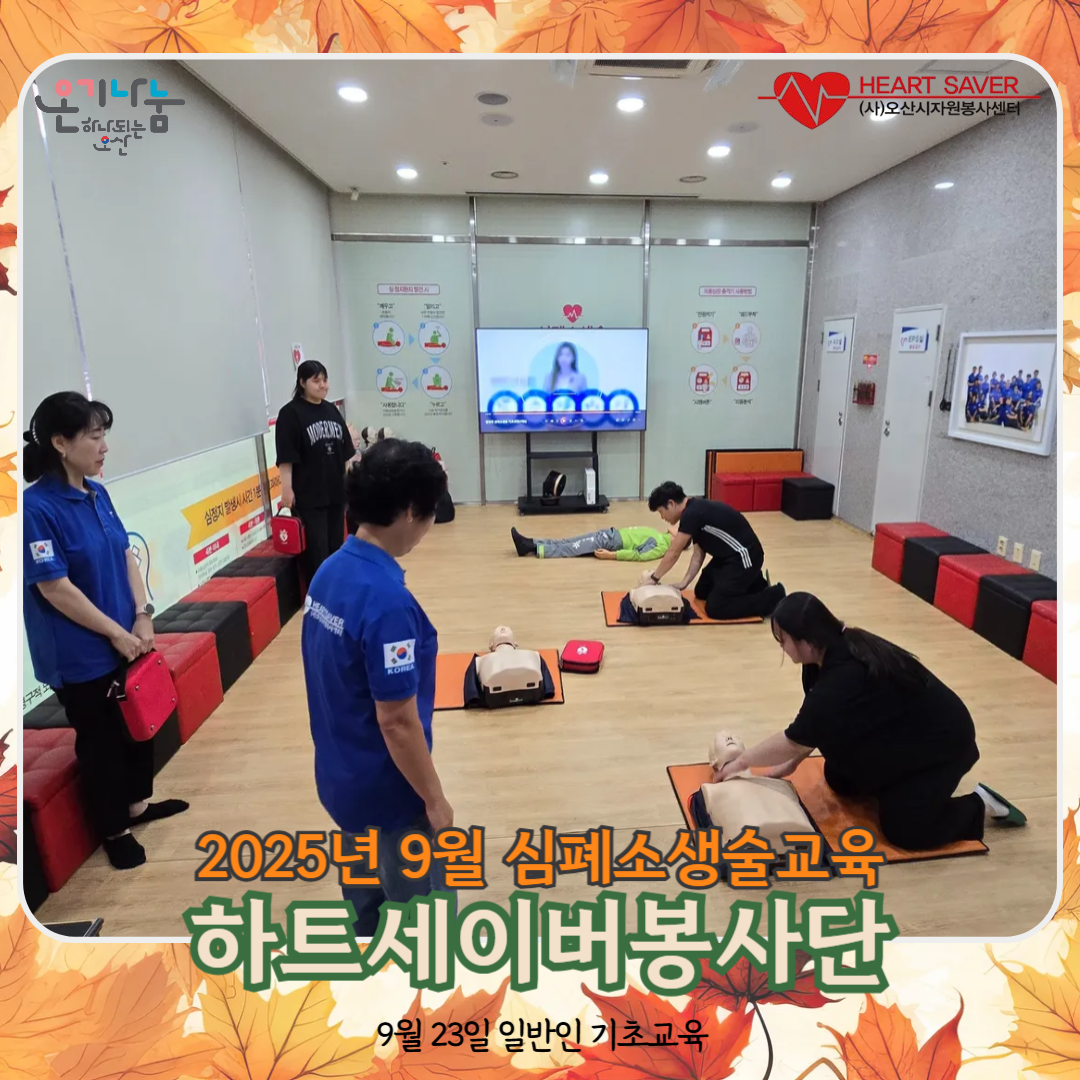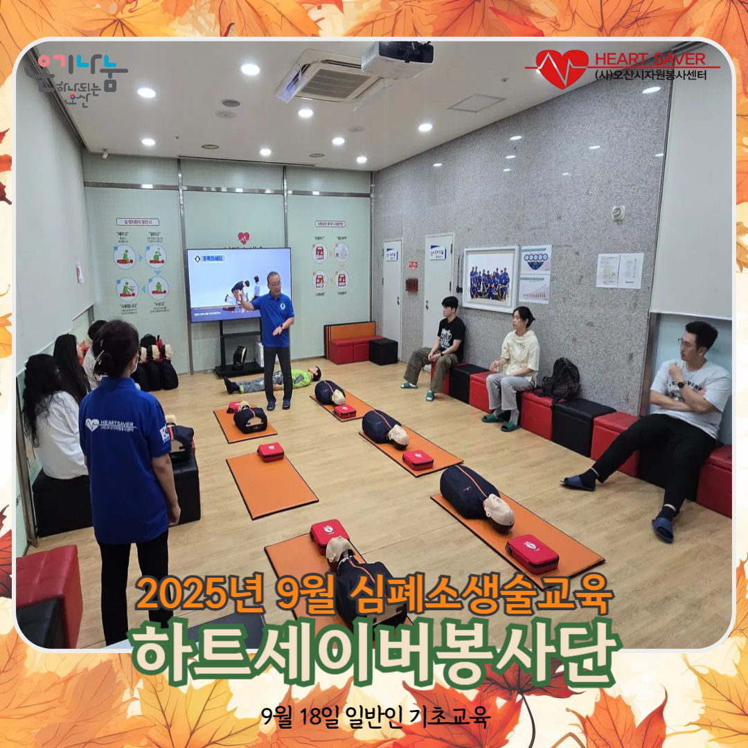 | Contact Us | Since 1998. 자원봉사활동자원봉사 참여 안내전문봉사단자원봉사단체활동처인센티브교육 및 프로그램자원봉사 교육안내자원봉사 프로그램 안내토요 프로그램교육 신청신청 교육 조회 및 취소심폐소생술 교육센터심폐소생술 교육센터 소개대한심폐소생협회 교육인증기관심폐소생술 교육정보심폐소생술 교육사진자료커뮤니티현장가GO봉사하GO보도자료Q&A정보센터공지사항서식자료실대관 및 대여소식지자원봉사 동영상자료센터소개이사장 인사말센터소개조직도 및 직원소개센터 마스코트 BONZBONZS명예의 전당세교마을 봉사센터찾아오시는 길 : 심폐소생술 교육사진자료 심폐소생술은 누구나 할 수 있습니다. 9월 심폐소생술 교육 첨부파일 4개 (다운로드 0회) 작성자 : 운영자 / 등록일 : 2025.10.17 (15:07) / 조회 : 78 목록