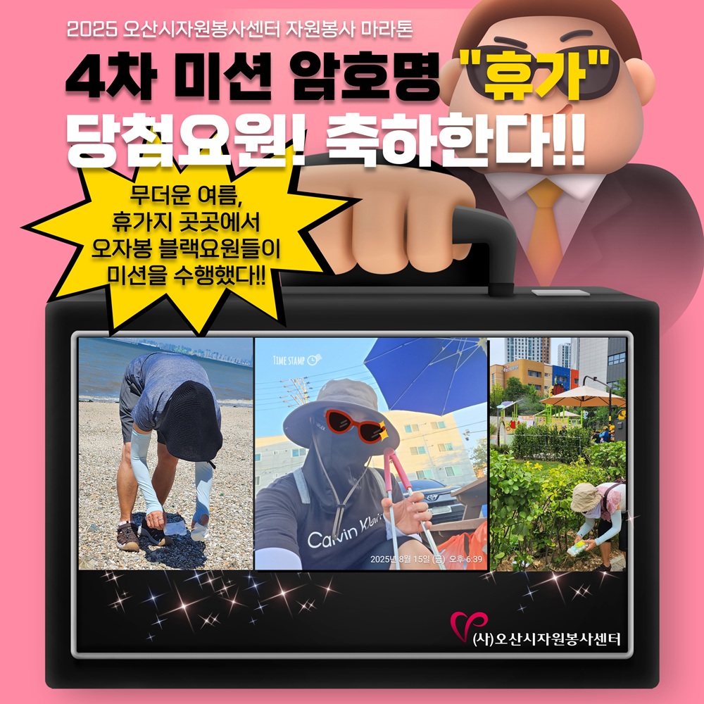 | Contact Us Since 1998. 자원봉사활동자원봉사 참여 안내전문봉사단자원봉사단체활동처인센티브교육 및 프로그램자원봉사 교육안내자원봉사 프로그램 안내토요 프로그램교육 신청신청 교육 조회 및 취소심폐소생술 교육센터심폐소생술 교육센터 소개대한심폐소생협회 교육인증기관심폐소생술 교육정보심폐소생술 교육사진자료커뮤니티현장가GO봉사하GO보도자료Q&A정보센터공지사항서식자료실대관 및 대여소식지자원봉사 동영상자료센터소개이사장 인사말센터소개조직도 및 직원소개센터 마스코트 BONZBONZS명예의 전당세교마을 봉사센터찾아오시는 길 : 봉사하GO 자원봉사센터의 모든 이야기를 사진으로 전해 드립니다. 미션임파서블 4차 미션 결과보고 첨부파일 1개 (다운로드 0회) 작성자 : 운영자 / 등록일 : 2025.08.27 (16:35) / 조회 : 175 목록