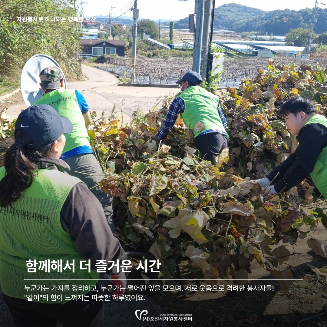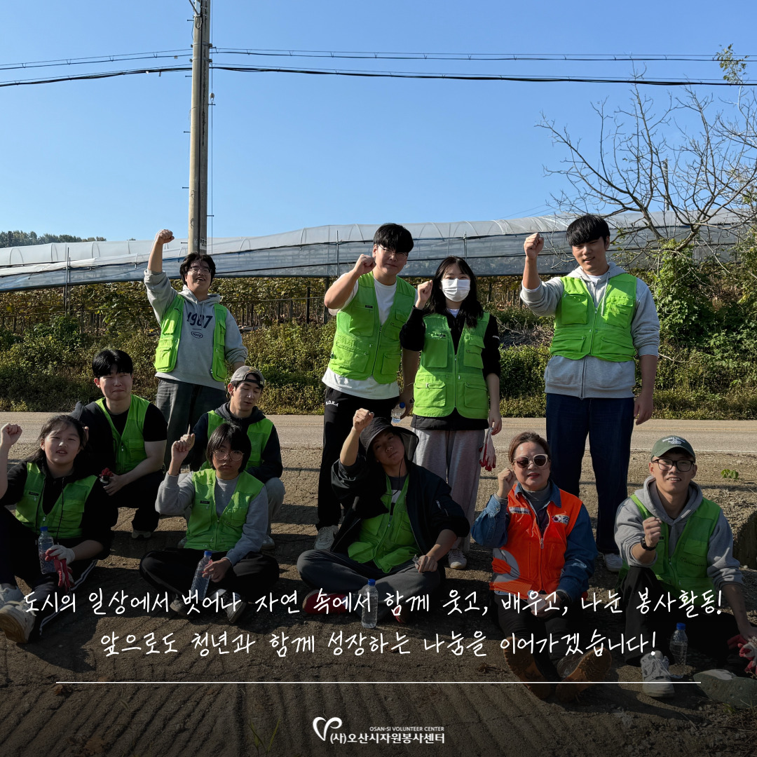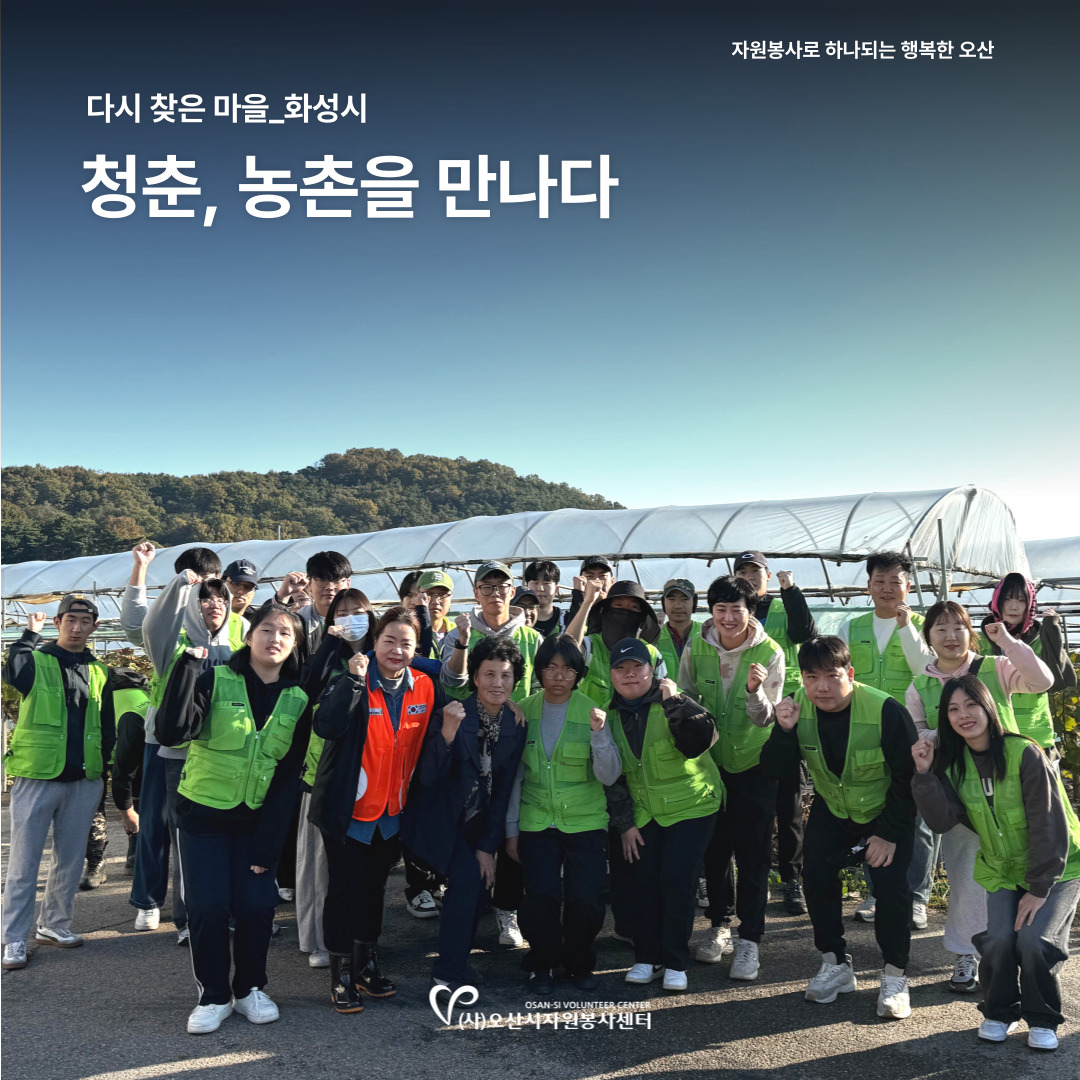 | Contact Us | Since 1998. 자원봉사활동자원봉사 참여 안내전문봉사단자원봉사단체활동처인센티브교육 및 프로그램자원봉사 교육안내자원봉사 프로그램 안내토요 프로그램교육 신청신청 교육 조회 및 취소심폐소생술 교육센터심폐소생술 교육센터 소개대한심폐소생협회 교육인증기관심폐소생술 교육정보심폐소생술 교육사진자료커뮤니티현장가GO봉사하GO보도자료Q&A정보센터공지사항서식자료실대관 및 대여소식지자원봉사 동영상자료센터소개이사장 인사말센터소개조직도 및 직원소개센터 마스코트 BONZBONZS명예의 전당세교마을 봉사센터찾아오시는 길 : 봉사하GO 자원봉사센터의 모든 이야기를 사진으로 전해 드립니다. 하반기 농총봉사활동 첨부파일 6개 (다운로드 0회) 작성자 : 운영자 / 등록일 : 2025.11.04 (10:32) / 조회 : 69 목록