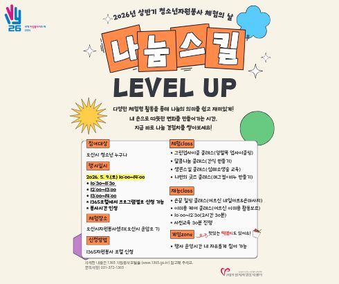 - 2026-04-23 | 2026년 상반기 청소년자원봉사 체험..